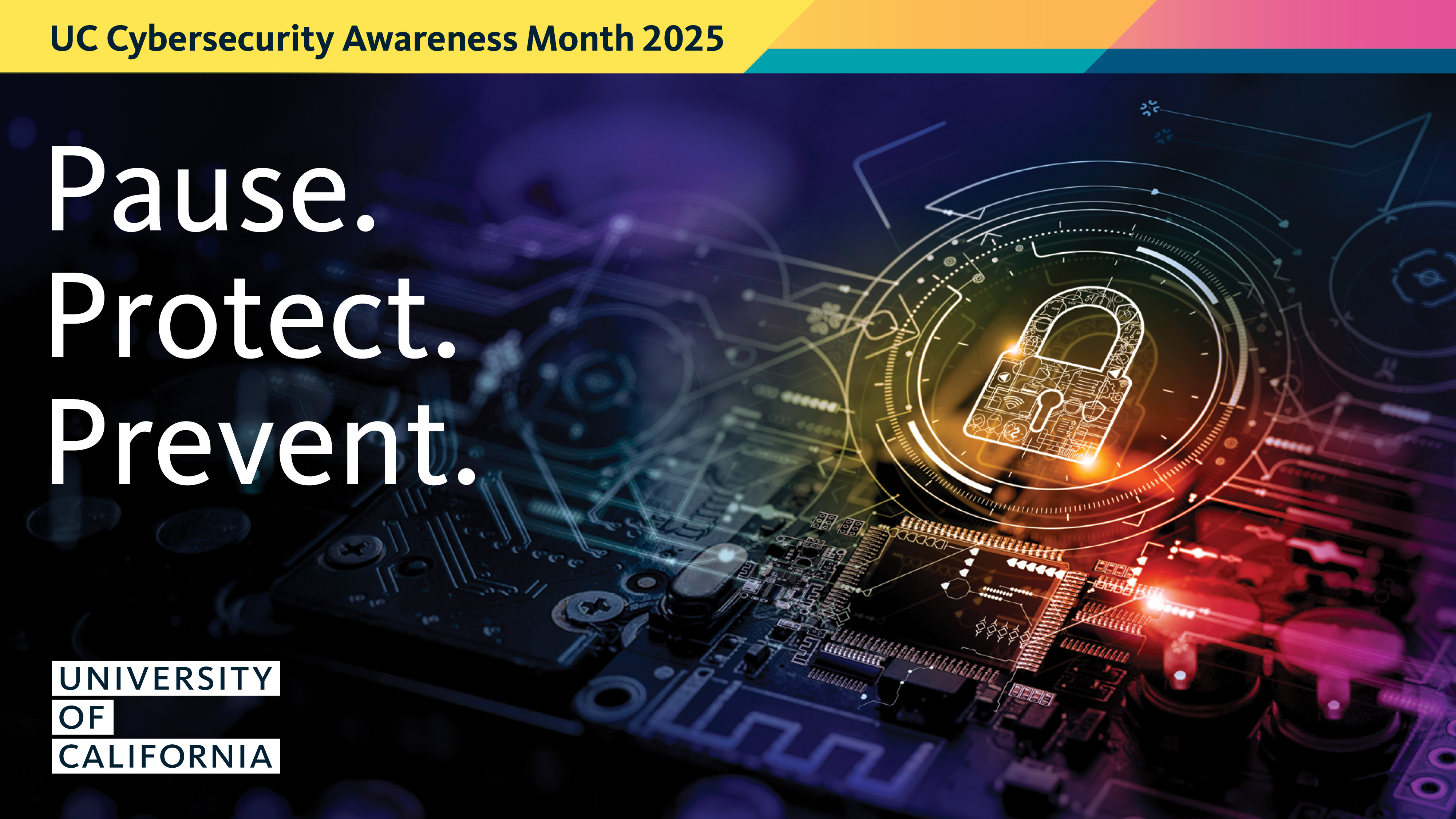 Cybersecurity is a shared responsibility, and your awareness makes a difference. I encourage everyone to participate in at least one Cybersecurity Awareness Month event hosted across UC locations. These events are designed to be engaging, informative, and a great way to strengthen our community’s cyber resilience. Finally, know that we are your partner in security. When you become aware of a security issue/vulnerability, let us know. Regardless of root cause, level of effort/cost to address, we will work with you to find a solution. Thank you for your continued commitment to keeping UC safe.